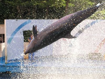 翌日行くつもりで開館時間を尋ねに水族館に近づくと「もうすぐ今日最後のイルカショーが始まるよ!」と言われたので勢いに負けて入る。ペンギン。
