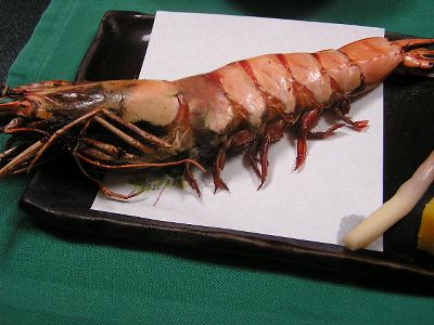 金目鯛の煮付け。これ3500円くらいしたがうまかった。ちなみにここで「親子定食」というのを頼むと車えびの焼いたのと甘えびの刺身がついてくる。親子ちゃうやん!