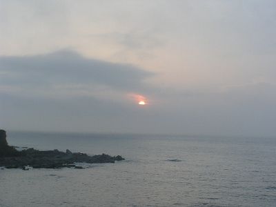 太平洋に昇る朝日。午前5時。夕日ほど印象的ではない。