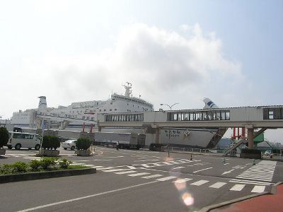 多賀城に来た目的は多賀城跡ではなくて「水曜どうでしょう」のロケ地・仙台港。ちょうど苫小牧からのフェリー「きたかみ」が到着したところ。
