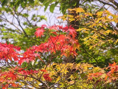 一部だけ色づいたカエデ。