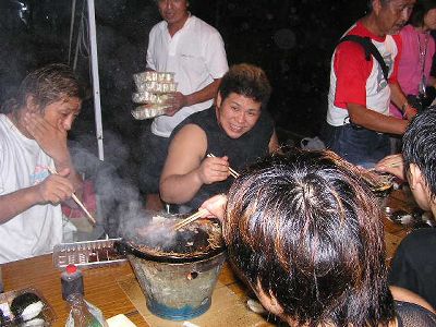 試合後一宮社長に声を掛けられて主催者、選手、東京からのツアーメンバーのためのジンギスカン大会に潜り込む(金は払ってない)。ジンギスカンうまかった。