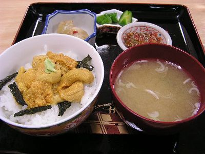 しかし11時ではまだまんぷく食堂は開いてなかった。待とうかとも思ったがすぐに開く気配もないので1階の寺田屋食堂でうに丼。後で駅で見たら11時半開店だったよう。やっぱり待てばよかったか?