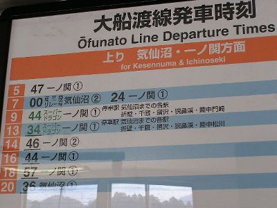 大船渡線はほぼ2時間に1本。
