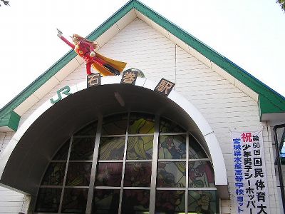 前谷地で石巻線に乗り換え石巻に。聞いてはいたが駅舎全体が石ノ森章太郎キャラで埋め尽くされている(昨日は降りなかったので気づかず)。