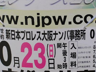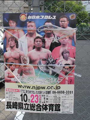 体育の日。朝9時始動。長崎で見かけた新日のポスター。