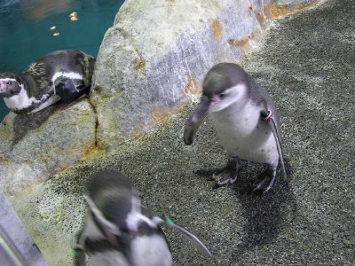 2階に上るとさっきの水槽を上から見る形に。陸のペンギンはやっぱり動かず。しかしかなり近くから見れるのは貴重。