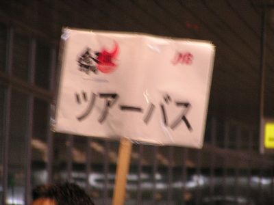 羽田集合は離陸1時間前の8時。使用航空会社はANAということで第2ターミナル。バスで新宿から羽田空港に。土曜の朝なのにちょっと渋滞気味。バスは最初に第2ターミナルに停車。羽田からのバスも第2ターミナル出発なのに。この優先っぷりは何?ここんとこJALしか使ってなかったので、去年できた第2ターミナルには初めて足を踏み入れる。・・・勝手がわからん。集合場所と全然違う方向に行ってたみたい。昨日から祭に参加している静岡のたてさん情報で「食料を用意してから会場に来た方がいい」と聞いてたので焼き鯖寿司を購入してから集合場所に。すぐにチェックイン。手荷物検査場に向かうが、なんかえらい時間がかかってる。最新鋭の検査機だからか?さっさと乗り込むが全く動く様子なし。乗客が揃ってない様子。おバカな人が遅刻したのかと思ったらアナウンス。「手荷物検査場が混んでおりまして、まだ乗っておられないお客様が・・・」手際が悪いだけか。せっかくターミナル2つに分けたのに。結局30分ほどの遅れで離陸。ただでさえ9時発の飛行機だと新千歳着10時35分、そこからバスで1時間、会場着は11時30分、と「イベントを見に行くためのオフィシャルツアー」にしては遅い(開演は10時、ステージも11時には始まる)日程になってるわけだが、さらに遅れる羽目に。