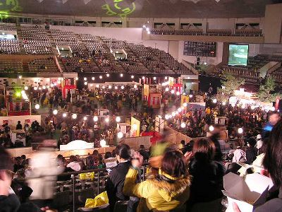 オープンスタジアムにはクレープ、焼き鳥、たこ焼きの屋台(バン)が出ていたが常に長い列ができていたのでついぞ並ぶ気にはならず。「祭」にしちゃあちょっと屋台少なすぎた?一方スタジアム内のレストラン「北の五輪」はいつもすいてたような。