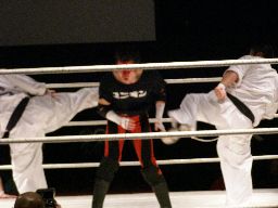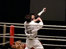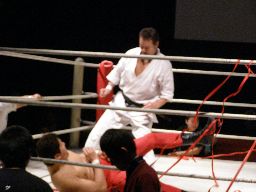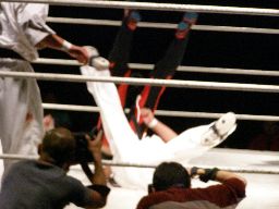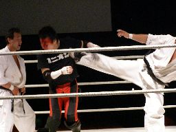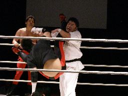 さらに攻撃を加える空手軍団、ユニオンセコンド陣と乱闘に(左写真)。
