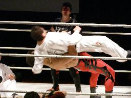 石川払い腰からケサ固め(左写真)、小笠原ロープ。