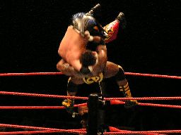 ベアハッグからターンバックルにぶつける。