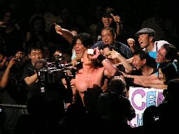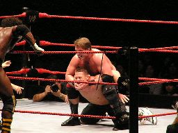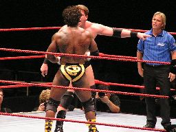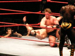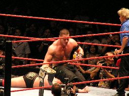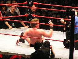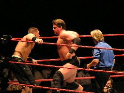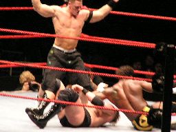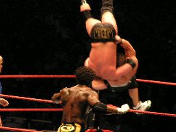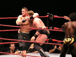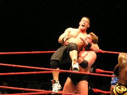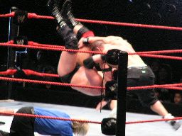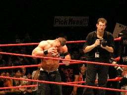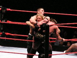 JBLコーナーに上る、シナも上ってスーパープレックス。