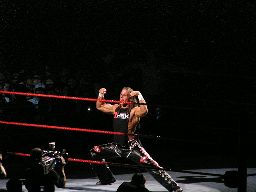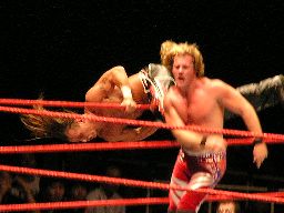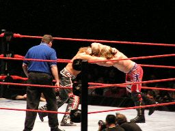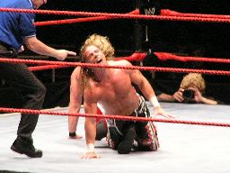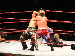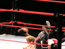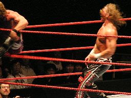ジェリコがHBKをコーナーに振って突っ込む、HBKかわしジェリコはコーナー直撃。
