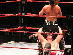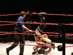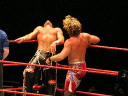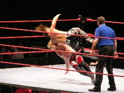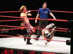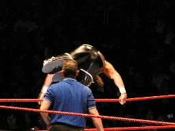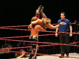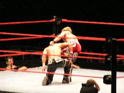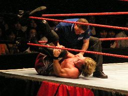ジェリコをリングに戻しコーナーからクロスボディ、ジェリコ丸め込む、カウント2。
