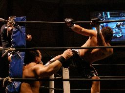 トーゴーがコーナーに上り、マエストロが肩車に担ごうとするが重くて上がらない(左写真)。アントンは太にイタリアンパウダー。