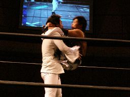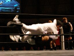 MIKAMI首投げ、コーナーに上ってスワントーン改(右写真)、カウント3。