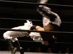 橋本ロープに振る、高梨ウラカン・ホイップ(右写真)、大家にタッチ。