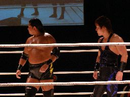 まず高木が一人で入場。続いて大鷲とHARASHIMAが入場(左写真)。