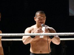 HARASHIMAは立ち上がれずDDT若手の肩を借りて退場。高木マイク。「ちょっと不完全だったが今の技がvs大鷲に考えた俺様の新必殺技、シットダウンひまわりボム、略してSHBだ。」