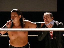 リザーブはマイクを持たずにしゃべろうとする。すると大鷲「大根役者をいじめるんじゃねえ。」背中をバンバン叩く。本当に痛そうだったのでスタナーによる首のケガはガチかも。