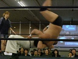 最後は柿本がドラゴンスープレックス(右写真)、カウント3。
