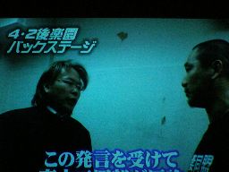 バックステージでの高木と田中リングアナの口論のもようが流れる(左写真)。