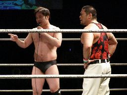 トーゴーヘッドロックに取ってナックル連打(右写真)。トーゴーは諸橋をターンバックルにぶつけて逆水平。