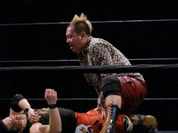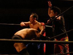 最後は猪熊のブロックごとテキサスクローズラインでなぎ倒して(左写真)3カウント。
