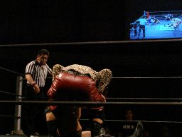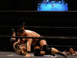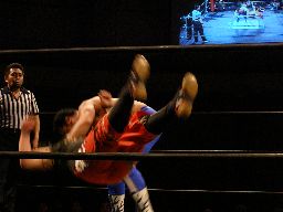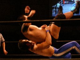 猪熊バックドロップ(右写真)、カウント2。