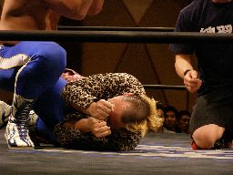 猪熊監獄固め(右写真)からトゥー・マッチ・ペイン、高木がカット。猪熊K7-308、キッド2で返す。10分経過。