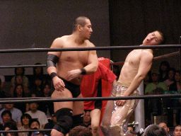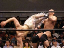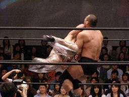 そしてダブルアームスープレックス(右写真)、カウント2。