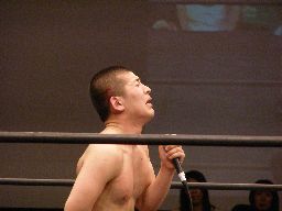 すると猪俣マイクを取って「社長!待ってください!僕の最期を見届けてください!お願いします!」と。高木が「最期って・・・何すんだよ?」と躊躇してると猪俣「いいから!」とリングに上げる。