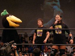 そして久々のデンジャラスドラゴンスリーパータカギDDT(右写真)、猪俣ギブアップ。