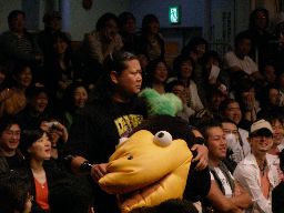 いつものように踊らせておいて頭をハタく。頭がもげて中の人が見える(右写真)。大鷲「夢も希望もありません。」