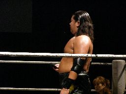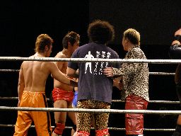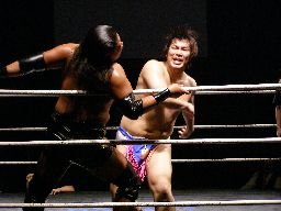 大鷲「うぉーい!あんな殺伐とした試合の後で申し訳ないが、メインイベントを行う。お前とお前、やれ」(右写真)ということでディーノとマイケルでスタート。