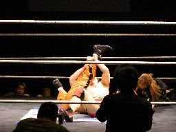 マイケルが入ると片エビ固め(右写真)、カウント2。