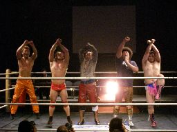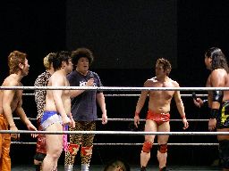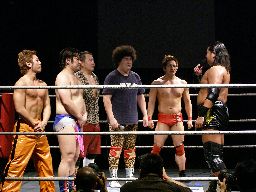 いつの間にかリング上には大鷲がリザーブに指示した人数である「5人」が(左写真。ディーノ、坂井、猪熊、高梨、マイケル)。