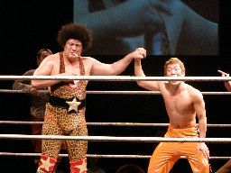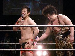 ゲイレーラはブレーンバスター、立ち上がれない高梨をお姫様抱っこで高梨をコーナーまで運んでやって(左写真)「マニー。」払わないのでDDT。