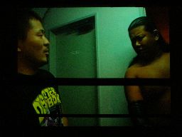 手四つでスタートしようとするが大鷲嫌う。大鷲は好き勝手な応援をしているD-BOXの面々に「うるせーぞてめーら!」ロックアップ、ディーノが小声で応援する。大鷲ブレークすると「コソコソ応援すんじゃねえ!今日はタイトルマッチなんだ黙ってろ!」
