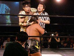 ポイズンコブラクロー(右写真)、レフェリーがブレーク。