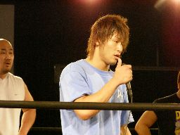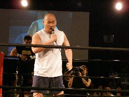 大鷲「おーい、短期間のうちにいろんなことが起きて、俺様もちょっと混乱している今日この頃でございます。とりあえずまとめると、私の後輩に対する扱いを考えないといけないようです。ちょっとジェットに対して冷たすぎたかもしれません。それはともかく、今日は防衛戦で、俺様がベルトを守った、それが一番大事なことです。よく見りゃベルトだらけじゃないか。ちょっとこの団体のベルトの数というものを考えるべきでしょう。」ベルトを持ってないマイケルに「お前ビミョーだからこっち来るな。次の後楽園はDISASTER祭りだ!」