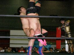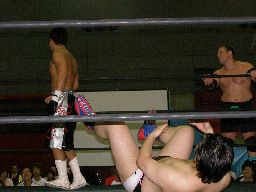 ポイズンが坂井にグリーンミスト、蛇ットがパンチ、そしてサウザーがラリアット(右写真)、カウント2。