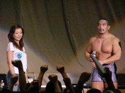 途中で鈴木浩子に話を振る。浩子「勘違いしてました。DDT、面白い!ヘビ、最高〜!もう私は一切口出ししません。健想を男にしてやってください!」浩子土下座。