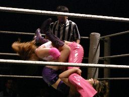チェリーがなぜかメガネかけてリングに(左写真)。