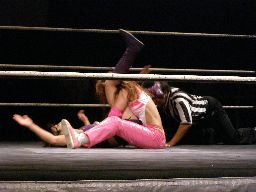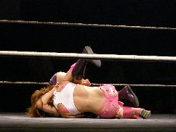チェリーは逆さ押さえ込み(右写真)、カウント2。