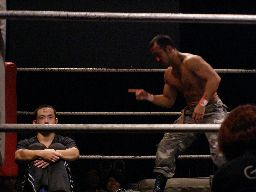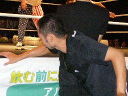 酔わされてリングサイドを徘徊する人間凶器(右写真)。