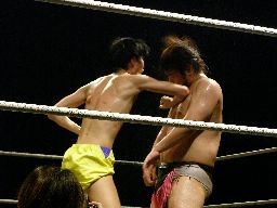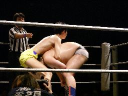 ディーノ母(from広島)キター!まずは張り手一発(左写真)。