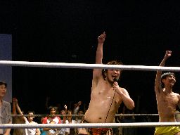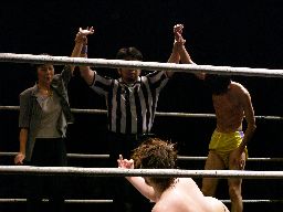 松井レフェリーはディーノ母と藤岡の手を挙げる(右写真)。