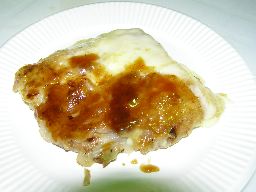 チーズたっぷりお好み焼き。今日食べれた固形物はこれだけ。